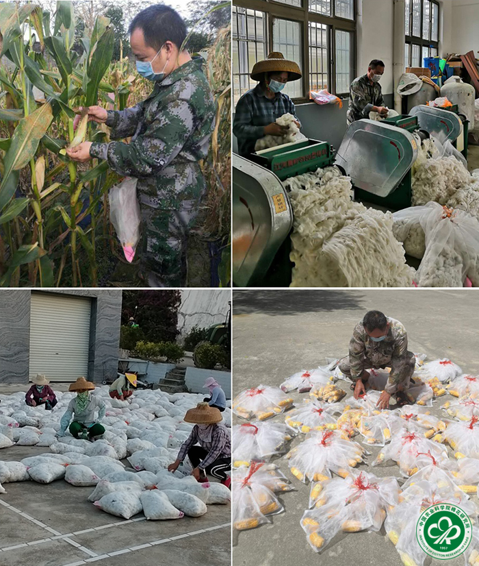 看着雪白的棉絮和饱满的玉米,棉花所海南科研中心的人员喜在眉梢,忧在心间。喜的是经过精细化管理棉花玉米长势良好,品性展示充分;忧的是受新冠肺炎疫情防控的限制,很多南繁课题组难以派人前来收获,为了最大限度地减少人员聚集,做好基地疫情防控,基地领导又明确要求依靠自身力量,尽量减少临时用工数量,自己维护轧花、脱粒、打包等加工设备,自己采收,确保零差错,圆满完成南繁采收、加工、邮寄种子工作。