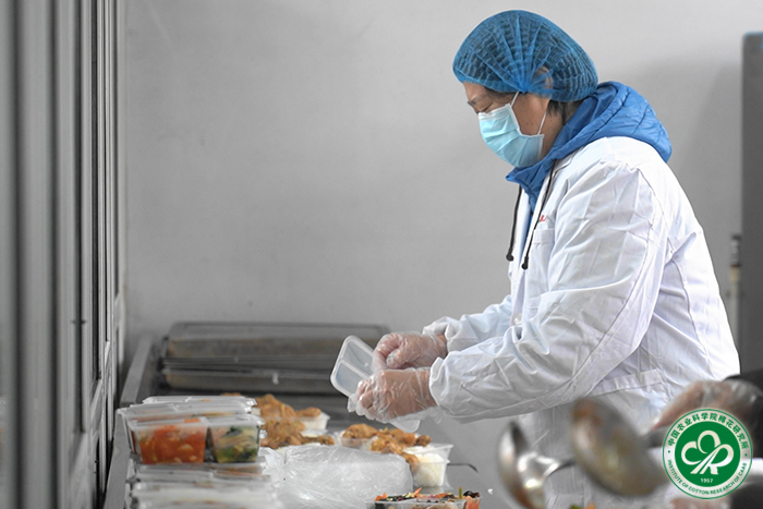 疫情防控“一线指挥部”成员、后勤服务中心副主任李慧英,负责食堂复工,并为职工准备盒饭