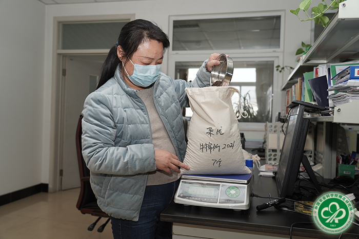 遗传育种研究室戚廷香副研究员准备参加棉花区域试验棉种