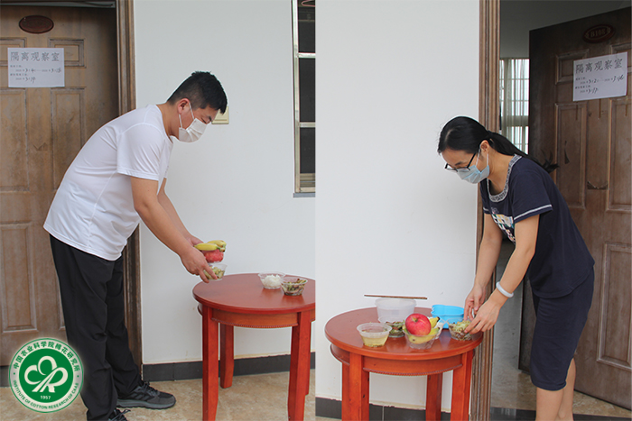 新冠肺炎疫情给外地来琼南繁人员带来了诸多不便,到达基地后要进行为期14天的隔离观察。基地领导再三要求一定要做好隔离人员的生活服务,张海全主动请缨,毫不犹豫地说:“我在基地做厨师已经4个年头了,跟南繁人员十分熟悉,咱基地人手又这么紧,他们的生活我包了,领导说怎么干我就怎么干。”他是这么说的,也是这么做的。每天除了按时送餐外,时不时地他隔着窗户询问下隔离人员的生活需求。在他的建议下,基地食堂每隔两天为隔离人员配点苹果和香蕉来调剂一下生活,受到了大家的称赞。