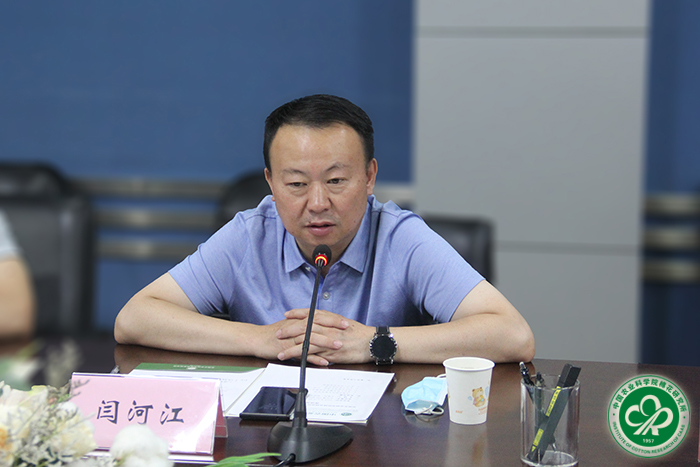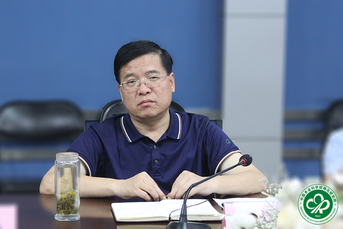 2020年6月13~14日,新疆生产建设兵团第二师副师长闫河江一行8人到星空体育·(中国)官方网站郑州所区和安阳所部考察调研,并就在第二师推广“良种+良法”配套技术及共建优质棉生产基地等合作事宜进行了座谈交流。副所长马雄风主持座谈会。