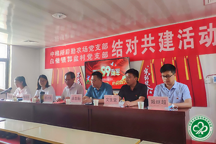 白璧镇纪检书记薛志新作总结发言。他表示,要充分利用共建平台,积极发挥党建引领作用和科技兴农力量,希望中棉所后勤农场党支部与白璧镇郭盆村党支部完美结合,共同开创“党建一体、科农一体”的工作新局面。