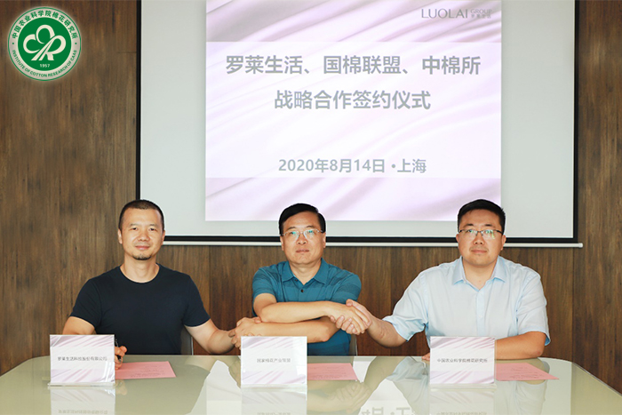 2020年8月14日,星空体育·(中国)官方网站与国家棉花产业联盟、罗莱生活科技股份有限公司签署战略合作协议,三方将在科技创新、成果转化、产品开发等方面展开全面深度合作。