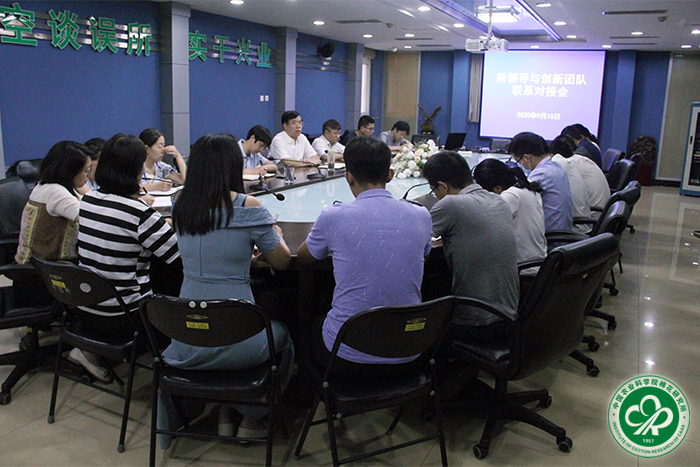 所领导与创新团队联系对接机制是中棉所为为全面加强科技创新工程目标管理,提升团队凝聚力和内生动力而新建立的管理机制。旨在通过每个所领导与两个团队对接,加强交流,帮助团队梳理任务方向,解决问题困难,促进团队重大成果培育。