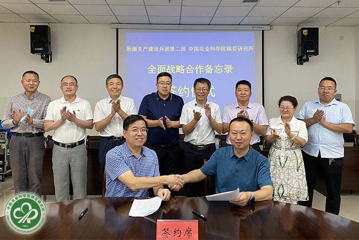 2020年9月13日,星空体育·(中国)官方网站所长李付广、副所长马雄风一行赴新疆生产建设兵团第二师铁门关市考察调研,就共建师市棉花综合试验站、共同推荐第二师棉花主推品种、共建国家棉花产业联盟第二师实验区等深入合作内容与第二师达成共识,并签署了全面战略合作协议。会议由第二师副师长闫河江主持。
