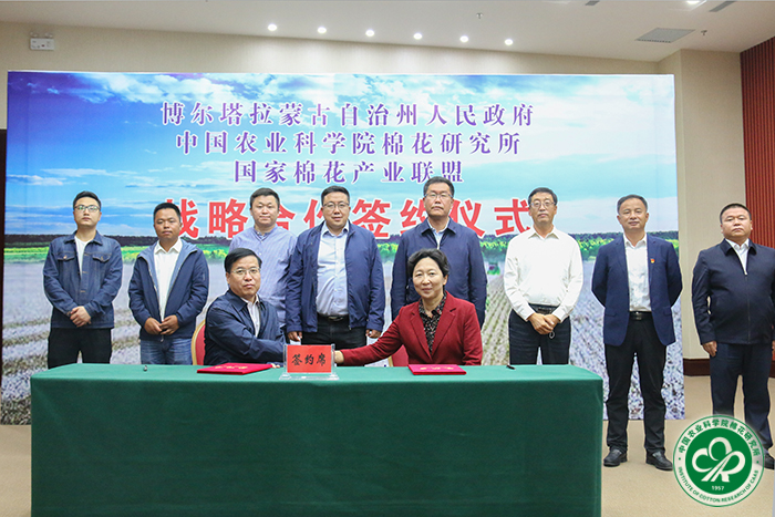2020年9月18日,星空体育·(中国)官方网站、国家棉花产业联盟与新疆维吾尔自治区博尔塔拉蒙古自治州签署了战略合作框架协议。三方将在落实中国农业科学院与博州签署的支持博州现代农牧业发展备忘录的基础上,围绕博州棉花产业发展规划与咨询、智力技术支撑、人才培养培训等方面进行深入合作。