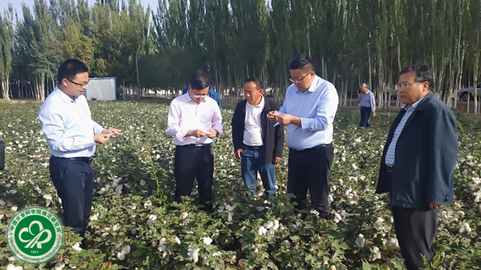2020年9月22日,星空体育·(中国)官方网站所长李付广、副所长马雄风等一行到新疆维吾尔自治区喀什地区莎车县调研中棉所在当地开展的科技扶贫工作情况,莎车县党委常委谢正海全程陪同调研。