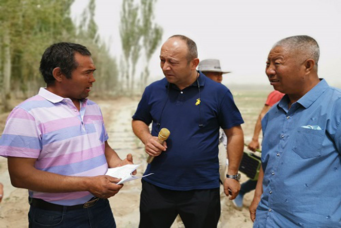 2020年5月,中棉所副所长马雄风到莎车县田间地头调研棉花苗期和苗期管理情况,提出了进一步在莎车适宜棉区尝试干播湿出技术和新型盐碱地改良技术,扶贫工作组对莎车县的棉花生产进行全程跟踪技术服务。