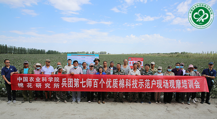 2020年,中棉所绿色增产增效创新团队和胡杨河试验站组成专家团队,在每个连队选择有威望、懂管理的职工作为优质棉科技示范户。通过为科技示范户免费提供20~60公斤由中棉所培育的中棉113、中棉所99、中棉所109等新品种种子,并配合“宽早优”植棉模式进行示范推广,真正实现“良种+良法”配套,“农机、农艺”融合。
