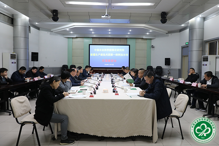 2020年11月18~19日,新疆生产建设兵团第一师阿拉尔市党委副书记、副师长李斌一行13人到星空体育·(中国)官方网站考察调研,并就第一师申报国家级高新区及共建国家棉花产业联盟优质棉基地等合作事宜展开深入探讨。会议由中棉所副所长马雄风主持。
