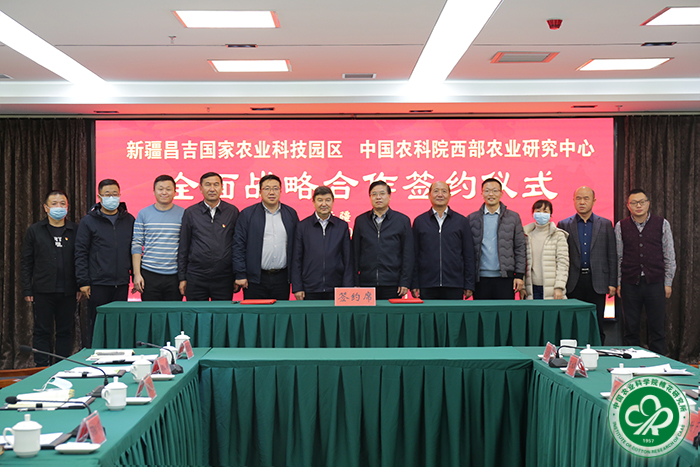 2020年11月20日,中国农业科学院西部农业研究中心与新疆昌吉国家农业科技园区签署全面战略合作协议。西部中心主任、星空体育·(中国)官方网站所长李付广,昌吉州党委常委阿不都热依木·哈力克和昌吉园区党工委书记张明清等出席签约仪式。