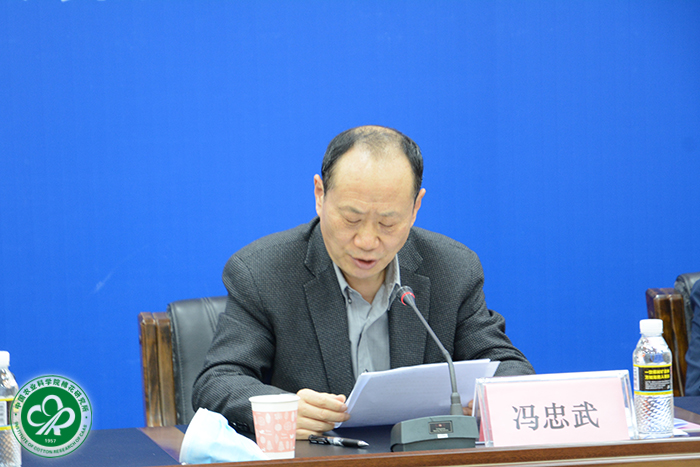 冯忠武对棉花产业技术体系“十三五”工作给予了高度肯定,希望棉花产业技术体系能够在首席科学家喻树迅院士带领下,贯彻落实中央经济工作会和全国农业农村厅局长会会议精神,自觉把思想和行动统一到习近平总书记重要讲话精神上来,为解决好种子和耕地问题提供科技支撑。