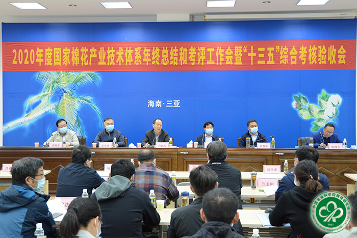 2021年1月12~14日,国家棉花产业技术体系在海南科研中心组织召开了2020年度年终总结和考评工作会暨“十三五”综合考核验收会。中国农科院副院长冯忠武到会指导,全国农技推广服务中心经作处处长陈常兵线上参会指导,国家棉花产业技术体系首席科学家喻树迅院士、石河子大学陈学庚院士和28个岗位科学家、24个综合试验站站长和部分团队骨干及省级产业技术体系、地方创新团队首席90余人参加会议。会议由中国农科院棉花研究所党委副书记宋国立主持。