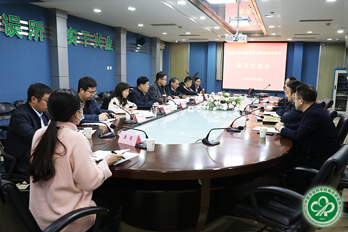 汤阴县政府党组成员、副县长徐泽颖,县政府党组成员裴法,县政府党组成员、政府办主任李宏杰,县农业局党组成员、总畜牧师索好飞,以及中棉所办公室、成果转化处、计划财务处、后勤服务中心、乡村振兴科技创新团队相关人员参加座谈。