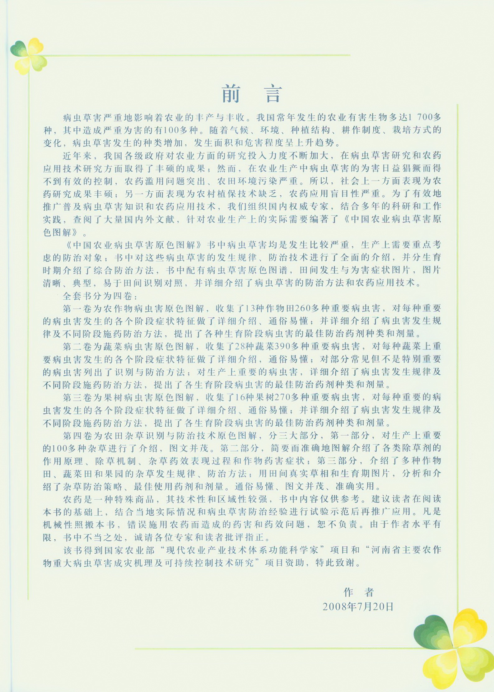 崔金杰等人主编,2008年8月中国农业科学技术出版社出版。编委会名录1页,本卷前言1页,目录5页,正文323页,四卷270万字。