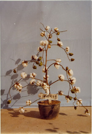 ⑴适于一般水肥地和高水肥地、轻病地和黄萎病区种植,整个生育期长势稳健,便于田间管理。为了充分发挥该品种的丰产潜力,前期要以促为主,促壮苗早发,使其早座桃;后期要增加肥水供应,确保早熟不早衰。⑵一般水肥地,密度3500株/亩左右,旱薄地适当增加密度,以4000-5000株/亩为宜。⑶在生产队要设种子田,选用中喷大朵,株选混收种子留种。做好提纯复壮工作,入选株系要保持一定的群体,以确保复合杂交丰富的遗传基础。
