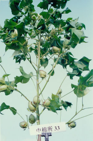 特征特性:生育期120天左右,比晋棉12号早熟5天。株形紧凑,近筒形。株高中等,茎秆粗壮,有微茸毛。叶片中等偏小,浅绿色,叶缘上翘,叶脉较粗。苞叶窄而上部扭曲,覆盖棉铃仅1/3,易防治虫害。纤维品质2.5%跨长28.5~29.5毫米,比强度22克/Tex,马克隆值4.3。出苗好,子叶肥大,长势状而整齐,上桃快,吐絮集中。抗枯萎,耐黄萎,抗苗病。