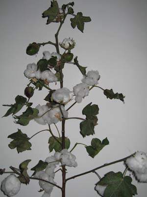 该品种为陆地棉早熟棉花品种,平均生育期120天,霜前花率90%以上;植株筒形,株型紧凑,植株较矮,株高50~60cm,Ⅰ-Ⅱ式果枝,第一果枝节位4.0,节位较低,叶片较小,叶色浅绿,铃卵圆形,中等大小,铃4-5室,铃壳薄,铃重5.5g,单株结铃5-7个,结铃集中,吐絮畅,易采摘。种子梨形,灰白色,子指9.8g,衣分44%,整个生育期生长稳健,现蕾开花早,吐絮早,早熟性突出。