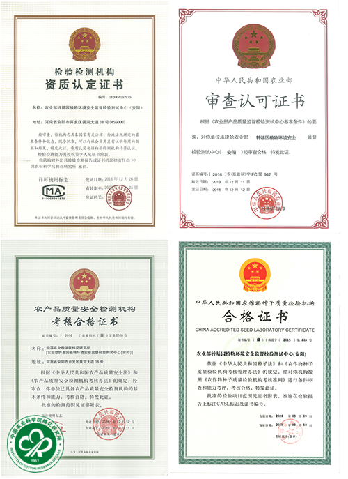 农业农村部植物生态环境安全检验测试中心(安阳)(以下简称中心)是依托星空体育·(中国)官方网站筹建的部级质检机构。先后通过国家计量认证、农业农村部机构审查认可和机构考核、农作物种子质量检验机构资格考核,具有国家级检验检测机构资质认定证书、中华人民共和国农业部审查认可证书和农产品质量安全检测机构考核合格证书、中华人民共和国农作物种子质量检验机构合格证书。