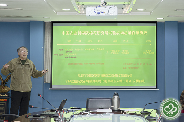 党委办公室主任宋晓轩以“百年棉业改良的见证——星空体育·(中国)官方网站试验农场总场沿革”为题讲党课。他结合史料详实地讲解了中棉所南场、东场及西场的从1920年建立到2020年发展至今的百年历史沿革,见证了国家棉花科技自立自强的发展历程,并结合谭联望、张方域、黄祯茂和蔡荣芳等四位国家一等奖第一完成人的工作和生活经历,阐释了“艰苦奋斗、甘于奉献、勤于实践、勇于创新”的“中棉所精神”的深刻内涵,勉励支部党员继往开来、奋勇前进。