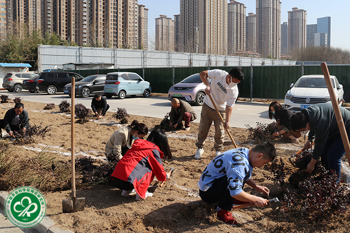 春渐暖,花初绽,植树添绿正当时。活动现场,大家分工协作,奋勇争先,挥铲掘坑、扶苗校正、培土围堰、提水浇灌,每道工序都认真细致、有条不紊,到处是一派繁忙景象。活动相继种下了月季、常夏石竹、欧石竹、红花檵木等苗木,青翠的树苗和碧绿的草坪,在明媚的阳光中迎风而立,展现出盎然生机和蓬勃活力。一番热火朝天的栽种,种下的不仅是一片葱郁,更是一片希望。