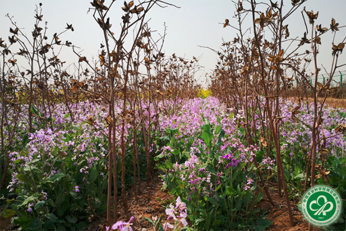 棉花套作二月兰翻压前棉田实景图