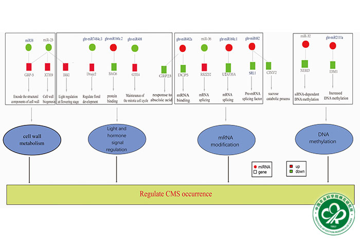 参与棉花胞质不育发生的“miRNA-mRNA靶标”调控网络