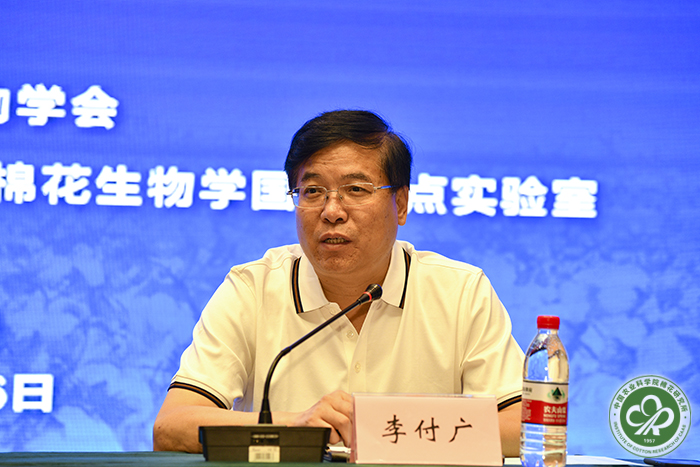 大会开幕式由中棉所党委副书记宋国立研究员主持。会上,中国作物学会副秘书长程维红宣读了《中国作物学会关于同意设立棉花专业委员会的批复》。中棉所所长李付广研究员致欢迎辞,对棉花专业委员会的成立表示祝贺,并表示中棉所作为挂靠单位,将积极支持棉花专业委员会的工作,希望广大棉花科技工作者集思广益,凝聚力量,提高站位,助推棉花产业高质量发展,打赢“十四五”科研攻坚战。