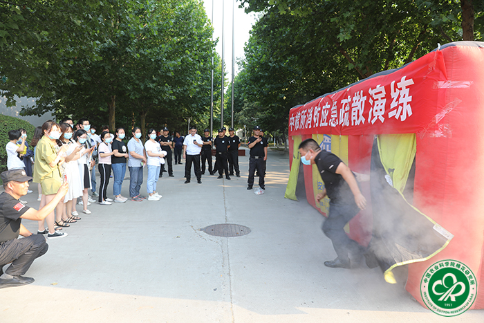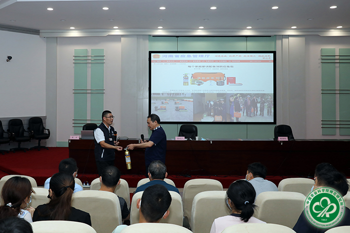 2021年6月25日,中棉所邀请郑州大学实验室管理中心副主任王志武和河南省消防协会专职教员彭冲为全所职工及学生进行了实验室安全管理培训、消防知识培训及开展了消防帐篷逃生演练活动。所长李付广出席活动并讲话,活动由副所长张西岭主持。