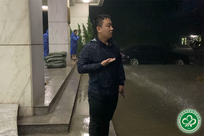 7月22日凌晨4:02,暴雨持续不断,中棉所院内的积水越来越深,副所长马雄风在中棉人微信群里发布通知“请在所部的年轻人马上到科研楼前集合”,大家随时做好抢险准备。