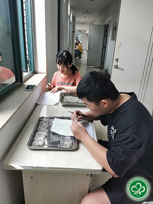 洪水中他们是坚毅的“抗洪战士”,实验台前他们是严谨的科学工作者。洪水退却后,“抗洪战士们”又进入了科研工作者的角色,由于洪水导致植保楼电力系统中断,室内光线不足,为保证既定的科研工作不断档,植保室职工和研究生将“实验台”搬到了窗边“借光”进行昆虫生长发育观察记录等科研工作。