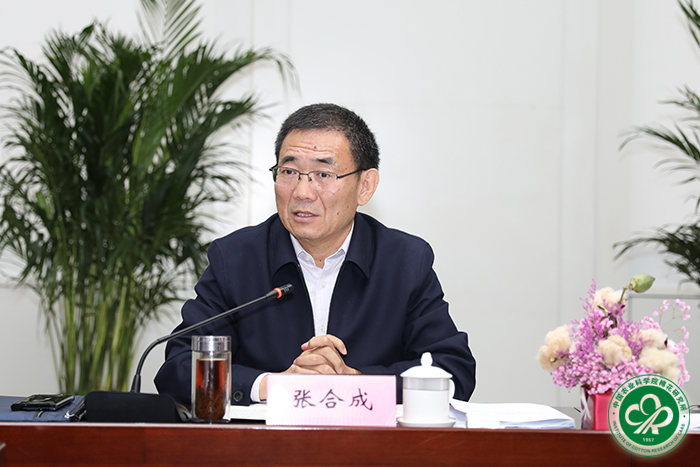 张合成充分肯定了中棉所领导班子、所党委工作成绩和点亮“中棉所精神”为中心的政治建设、思想建设成效等,对班子在科技创新、成果转化、人才队伍、党的建设、基地平台建设等方面的思考与建议表示赞同。他要求,中棉所要在“两个一流”建设方面继续加力,一是要明确高远目标,开展技术攻关,发挥优势资源作用,不断创新突破;二是要落实中央巡视整改要求,将推进向新疆转移作为政治任务,加强统筹布局;三是要梳理成果转化思路,开展攻坚任务,提升转化能力,推进科技成果在新疆转移转化;四是要突出加强所内政治建设和思想建设,为科研人员营造环境宽松、纪律严明、团结活泼的创新环境。