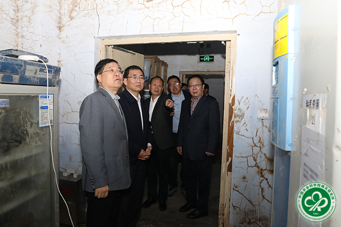 中国农科院副院长冯忠武和基建局局长夏耀西、院办公室副主任高雷、科技局副局长熊明民及人事局人才工作处处长王海峰、科技局综合处处长苗水清等参加调研。(摄影:张士闯)