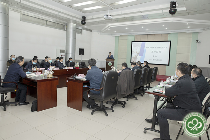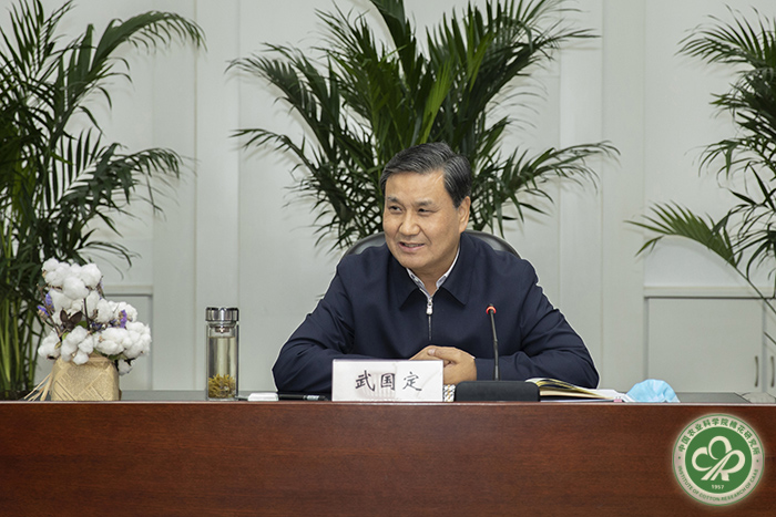 2021年11月11日,河南省副省长武国定到星空体育·(中国)官方网站调研,主持召开座谈会,听取中棉所工作汇报,推动落实河南省政府与中国农科院签订的《战略合作框架协议》。