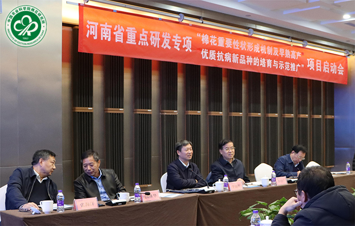项目首席杨召恩研究员就“棉花重要性状形成机制及早熟高产优质抗病新品种的培育与示范推广”项目的主要研究内容与目标、年度工作计划、经费预算、组织管理和相关保障措施等进行汇报。各课题负责人分别就课题实施方案和下一步工作重点进行汇报。