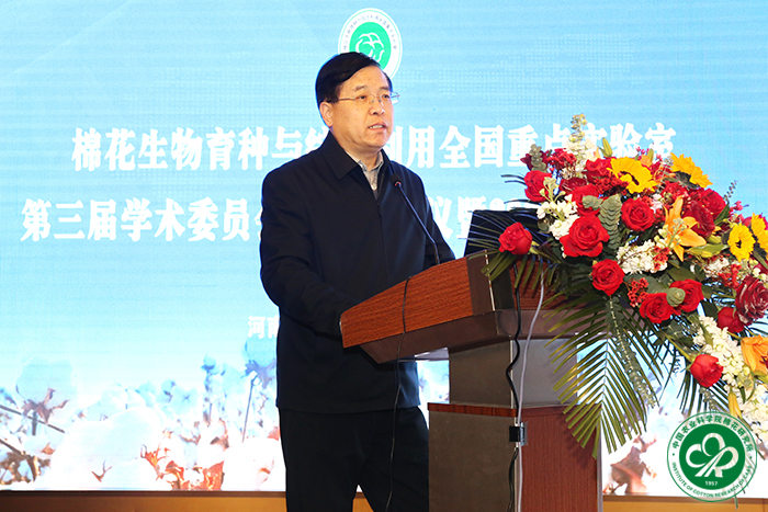 实验室学术委员会主任陈晓亚院士、副主任喻树迅院士,委员李培武院士、尹飞虎院士、李付广研究员、宋纯鹏教授、屈凌波教授、马峙英教授、张天真教授、孔照胜研究员通过线上线下相结合的方式出席会议。中国农业科学院副院长、棉花研究所所长曹永生,河南省科技厅总工程师高拓、实验室与平台基地建设处处长贾柔冰,中国农业科学院平台处副处长王萌等应邀到会指导。各依托单位主管领导、实验室固定人员、学术骨干、研究生共计160余人参加会议。