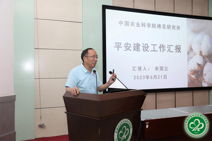 座谈会上,宋国立对吴利群一行来所表示热烈欢迎,并就中棉所强化组织领导与工作落实、保障国家政治安全、开展“三零”创建与“双提双知”工作、推动专项治理工作实施以及开展消防、危化品、保密、信访、网络等领域重点工作进行汇报交流,对中棉所加入安阳市平安建设考评体系后的谋划和安排进行了详细地介绍。