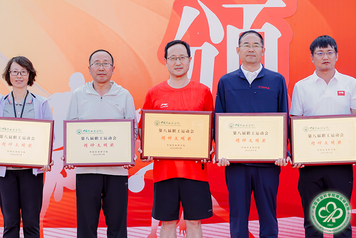 赛场上,中棉所运动员精神饱满、斗志昂扬、勇于拼搏,经过激烈角逐,获得男女混合篮球定点投篮亚军,并在女子800米、女子跳远、女子100米等项目获得名次。闭幕式上,中棉所荣获“团结奋进奖”和“精神文明奖”,宋国立代表中棉所参加中国农业科学院“2024年职工健步走活动”启动仪式。
