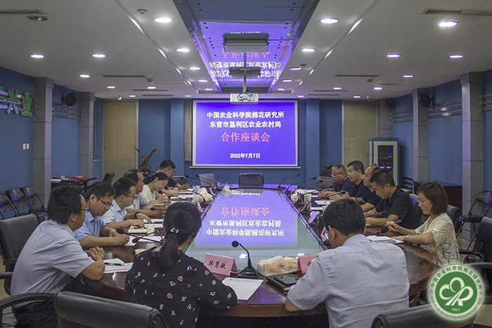 2022年7月7日,山东省东营市垦利区农业农村局局长宋华锋一行到星空体育·(中国)官方网站洽谈合作,并就共建盐碱地种业研究院等相关事宜进行座谈交流。副所长张西岭出席会议,成果转化处处长马小艳主持会议。