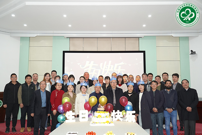 活动现场布置得温馨浪漫,五彩斑斓的气球、精美的蛋糕和丰富的美食让人们感受到了浓浓的生日氛围。大家齐聚一堂,共同为过生日的职工们庆祝。党委副书记、纪委书记宋国立和副所长张西岭为寿星们送上了精美的生日礼物和诚挚的祝福,感谢大家一直以来为中棉所的发展付出的辛勤汗水,希望通过这场生日会,让大家感受到研究所的关心与关爱,在新一届领导班子的带领下,珍惜当下,砥砺前行,积极投身科研,不断奋进,吹响中棉所改革的号角,踏上新征程,开创新局面,再创新辉煌。随后,寿星代表发表了感言,感恩中棉大家庭,感恩与大家一路同行,在今后的工作中要进一步传承弘扬“艰苦奋斗,甘于奉献,勤于实践,勇于创新”的“中棉所精神”,为推动棉花产业高质量发展作出新贡献。在生日歌声中,寿星们一同许下愿望,吹灭蜡烛,结束了美好的生日庆典。