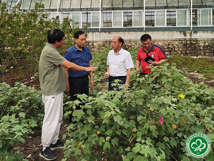 陈萌山一行实地查看了田间生长的野生棉材料,听取了野生棉圃负责人刘方研究员的介绍,并就世界野生棉资源的分布,种质圃资源材料的收集和保存,以及我国野生棉种质资源的创新利用等方面与在场的研究人员进行了深入交流。陈萌山对中棉所几代科研工作者不遗余力从世界范围内考察收集野生棉种质资源、建设完善野生棉种质资源圃、挖掘利用野生棉优异基因源等工作给予了高度肯定和赞扬。他表示,青年科研人员要继续发扬“中棉所精神”,深入挖掘野生棉优异基因源,为提高我国野生棉种质资源基础研究和创新利用作出更新更大的贡献。