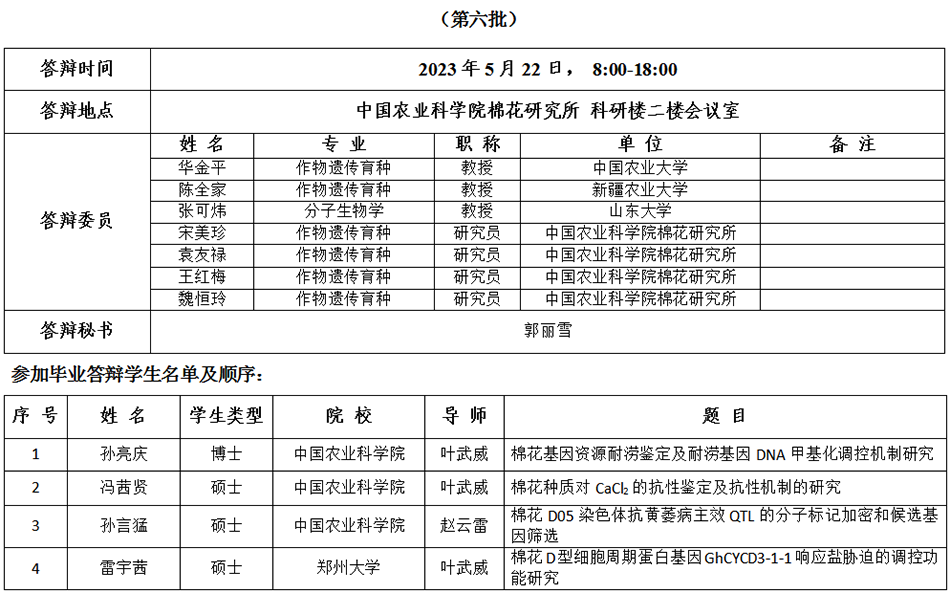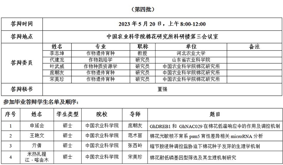 根据《中国农业科学院学位授予工作实施细则》和研究生院论文答辩工作安排,经研究决定,于2023年5月20日进行我所2023年研究生学位论文答辩,具体安排如下: