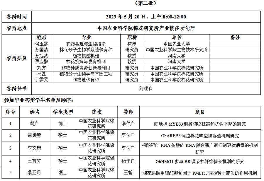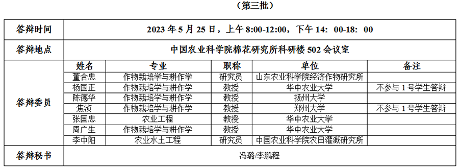 根据《中国农业科学院学位授予工作实施细则》和研究生院论文答辩工作安排,经研究决定,于2023年5月25日进行我所2023年研究生学位论文答辩,具体安排如下: