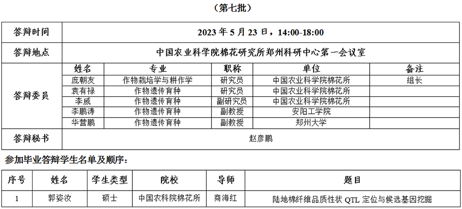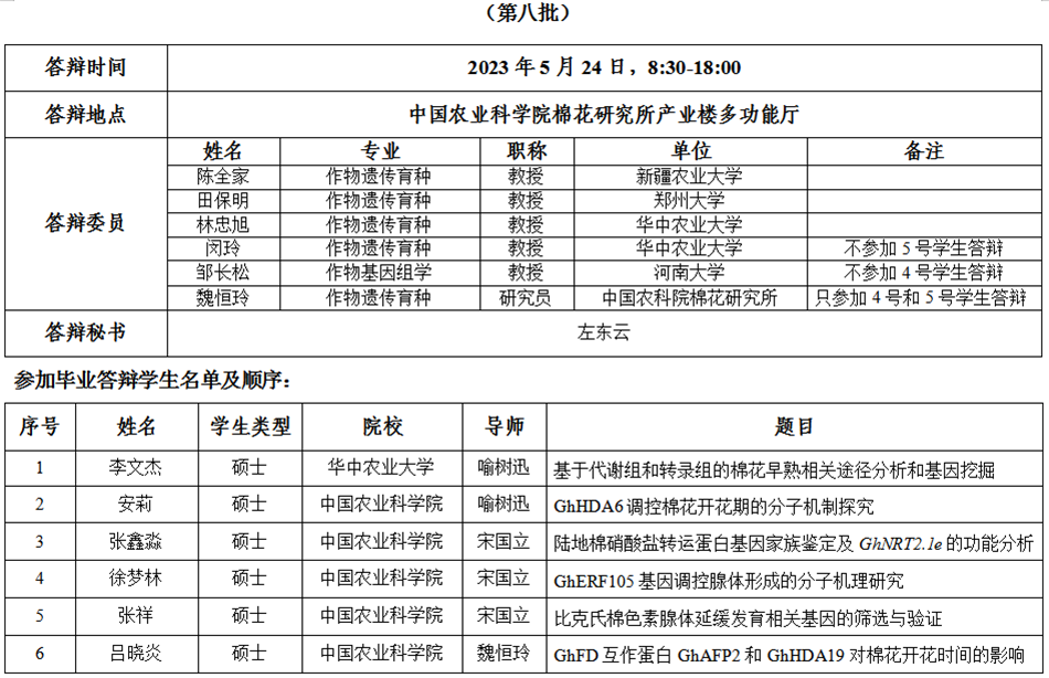 根据《中国农业科学院学位授予工作实施细则》和研究生院论文答辩工作安排,经研究决定,于2023年5月23日进行我所2023年研究生学位论文答辩,具体安排如下:
