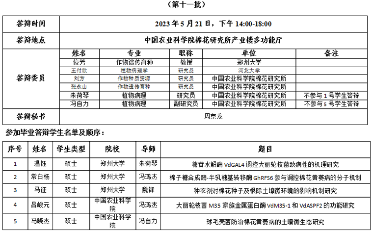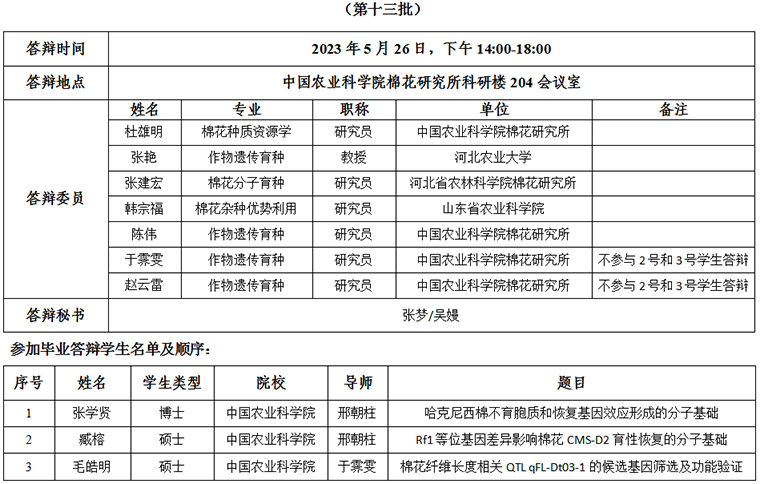 根据《中国农业科学院学位授予工作实施细则》和研究生院论文答辩工作安排,经研究决定,于2023年521日进行我所2023年研究生学位论文答辩,具体安排如下: