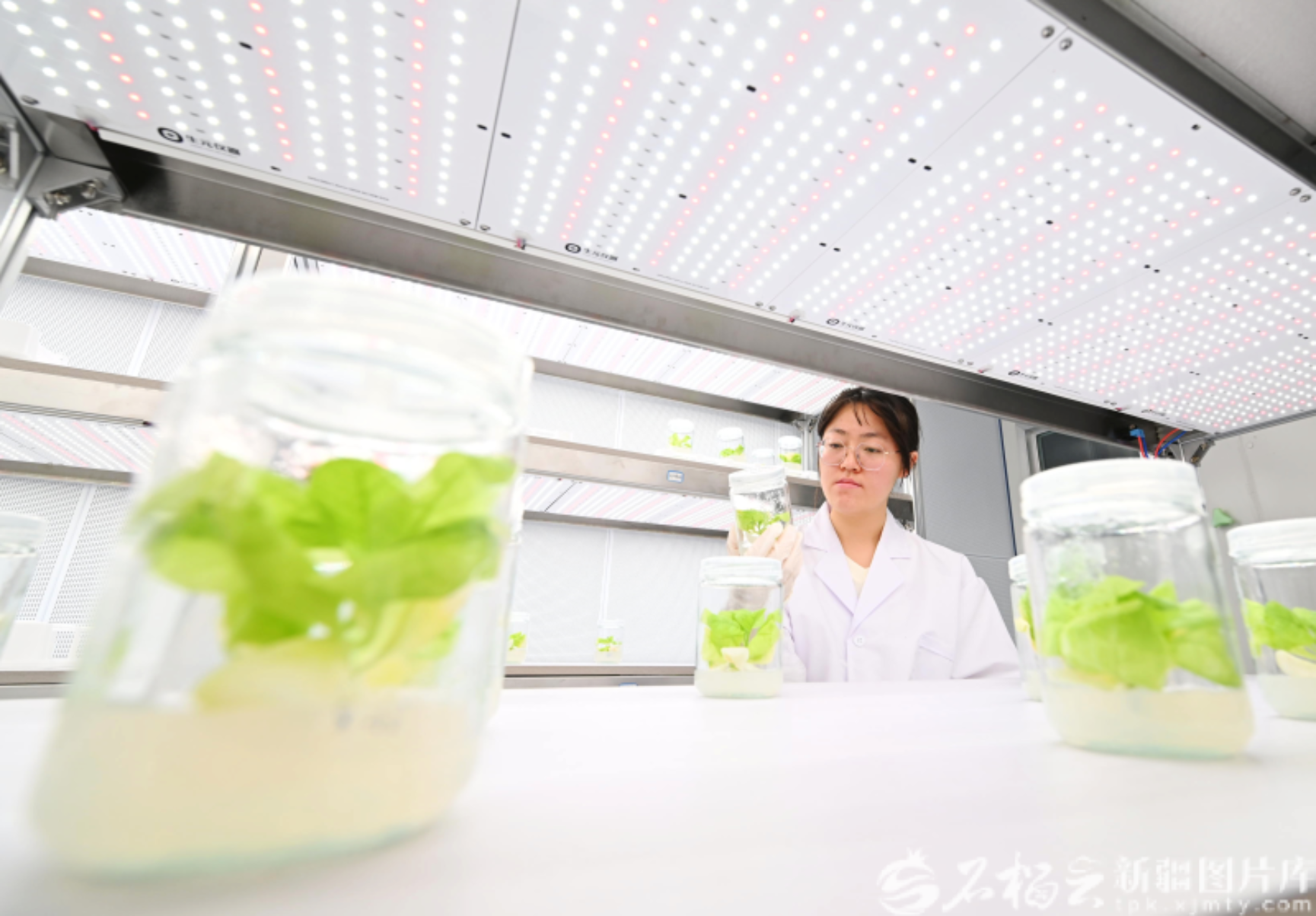 3月5日,中国农业科学院西部农业研究中心科研人员在观察棉花种子长势。何龙 摄