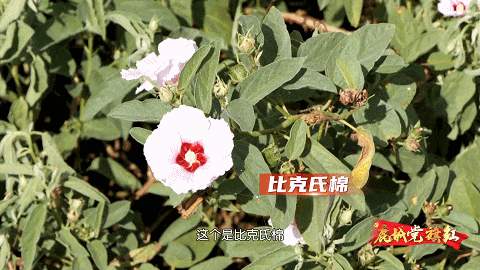 这个像手掌一样的叶片,这个棉花棉种就是三裂棉。三裂棉主要是从南美洲收集过来的;像牵牛花,这个是比克氏棉,是从澳大利亚收集过来的;还有那边像三叶草一样,那个棉花叫司笃克氏棉,是我们从阿拉伯半岛收集过来的。这些都是我们棉花资源的国宝,都是我们棉花的活化石。