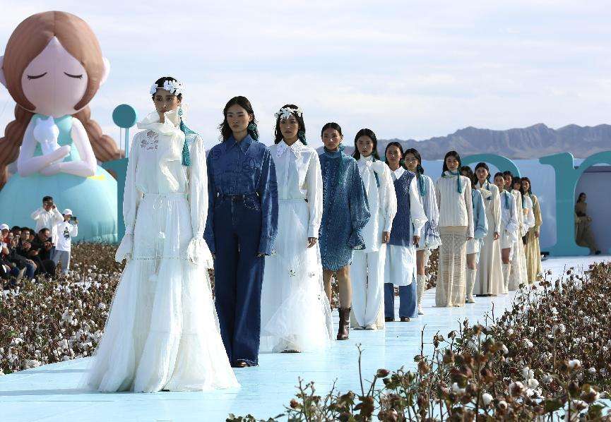 活动现场,长满棉花的棉田秀场为观众呈现了一幅画卷,模特们身穿由国棉CCIA溯源认证的高品质棉花原料制成的时尚服装,走上“中”字台,优雅地展示着每一件设计独特的棉制产品,让全世界看到了新疆棉田中国棉的魅力,更见识到了国棉“CCIA”品牌的潜力和实力。