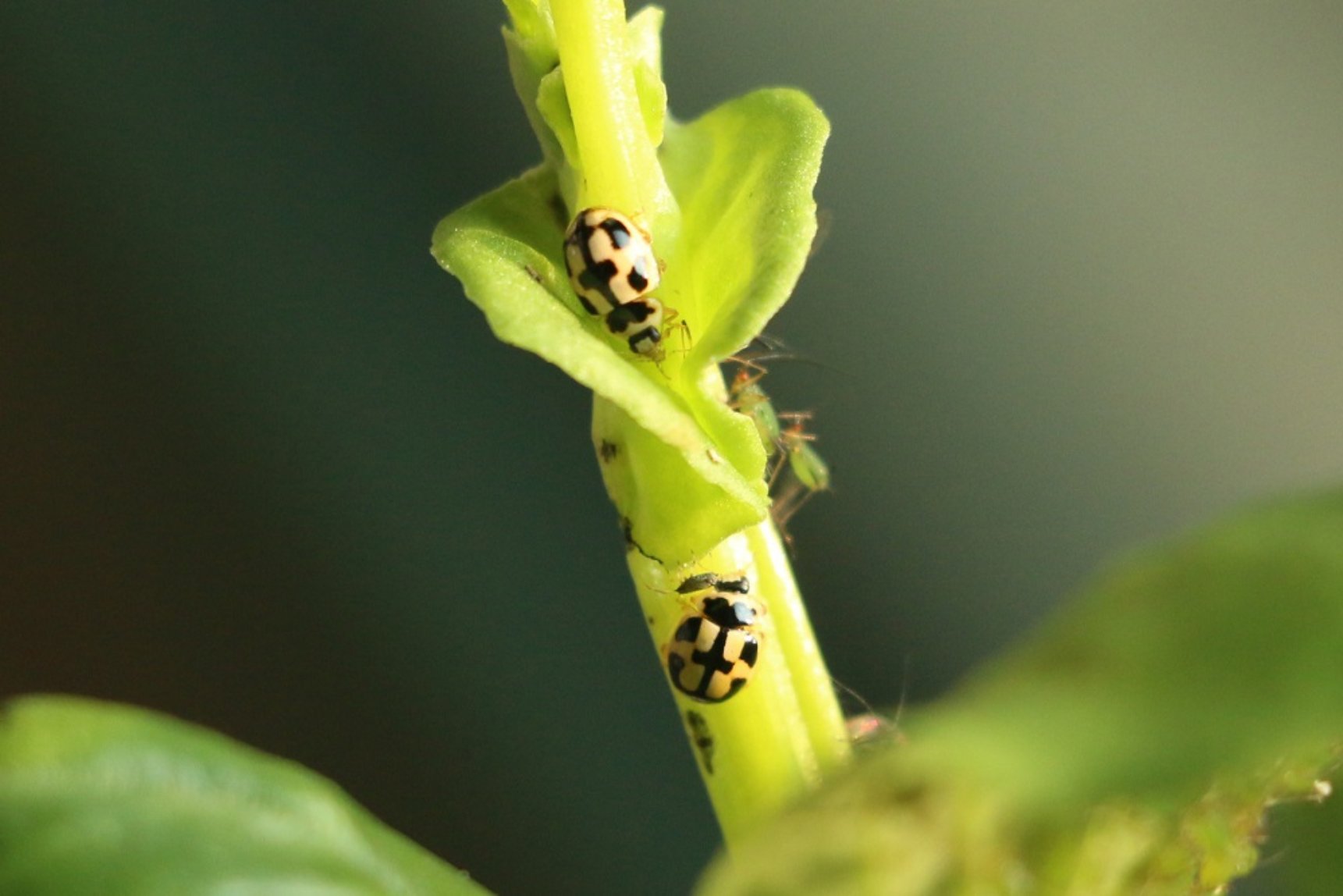 龟纹瓢虫和蚜虫(右侧绿色小虫)。中国农科院供图