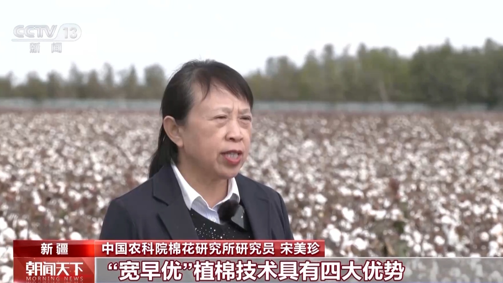 中国农科院棉花研究所所长 李付广:早熟棉花新品种中棉113,综合性状优良,具有早熟、高产、优质、抗逆等特点,配合“宽早优”种植模式在新疆大面积推广种植,确保新疆地区高品质棉花稳定供应。